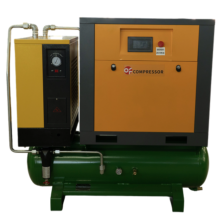 Специално изработен от OF AIR Compressor Co., Ltd. за Cut Air fiber laser cutter, компресорът CA7 с високо налягане осигурява до 1.2MPa за високоефективна домашна употреба. С компактен въздушно охлаждан дизайн и без необходимост от основа, той включва въздушен резервоар от 0.18m³ и тристепенна система за последваща обработка (охладителен сушител + тройна филтрация), за да гарантира чист, стабилен и сух компресиран въздух. Това осигурява оптимално качество на рязане и надеждна работа на лазерната система Cut Air.