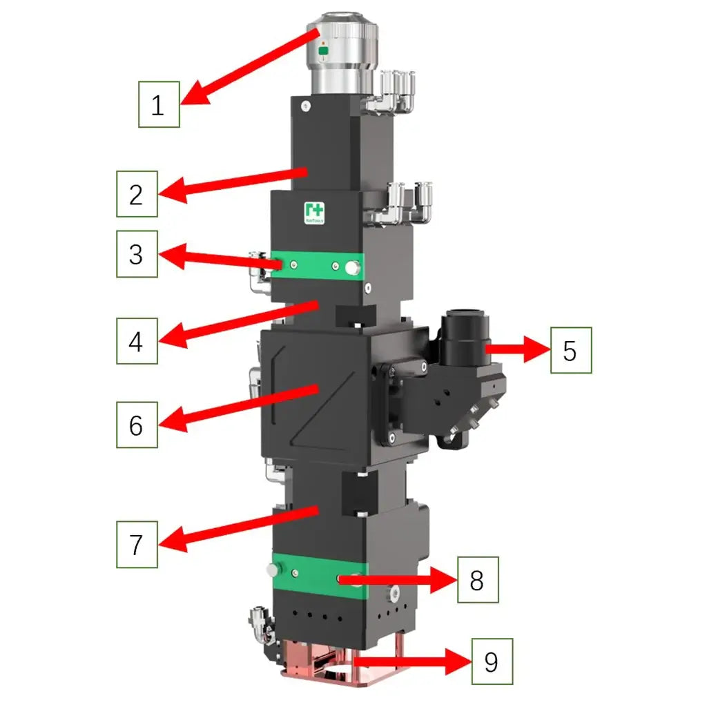 - Szufladowy uchwyt soczewki ochronnej: Soczewka ochronna skutecznie zapobiega uszkodzeniom systemu optycznego przez rozpryski i opary powstające podczas procesu spawania.