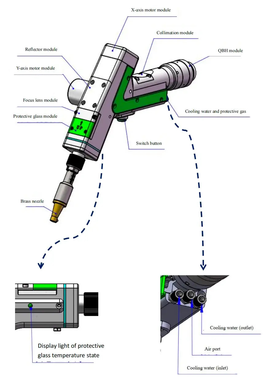 - Mode Switching: Switch between welding and cleaning modes via [System Parameters] → [Authorization] → [Processing Type]. The system will prompt you to replace the corresponding module (e.g., focusing lens assembly, nozzle).